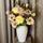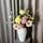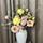 Farvepaletten balancerer smukt mellem varme og lyse nuancer, og de naturlige elementer giver et harmonisk og luftigt udtryk. Resultatet er en stilfuld buket, der både føles levende og rolig – ideel til at bringe forårsstemning, friskhed og æstetik ind i ethvert rum.
