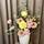 Den fine 'Willow Bud Branch' skaber dybde og struktur, mens den lyse 'Yellow Peony Flower' tilfører et varmt og solrigt strejf, der lyser op i helheden. Den romantiske 'Light Pink Lilac Flower' bidrager med lethed og en subtil, poetisk elegance, mens de fine 'Eucalyptus Three Leaves' afrunder buketten med et friskt og grønt pust.
