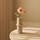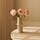 Yndefuld blomst, der emmer af blød, romantisk skønhed. Den enkelte blomst folder udfoldes med lagdelte, sarte kronblade i en lyserød nuance, hvor subtile toneforskelle gradvist glider over i en varm gul midte, hvilket skaber dybde og liv i blomsten. Den slanke, let buede grønne stilk med få elegante, aflange blade understreger blomstens naturlige ynde og skaber et harmonisk, organisk udtryk.