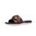 Sandal er lavet i smukt brunt skind, der giver et klassisk og stilfuldt udtryk. Den brede rem over foden kombineret med et dekorativt spænde i guldmetal tilfører designet et eksklusivt touch og gør sandalen nem at style til både hverdagslooks og sommerens lette outfits.